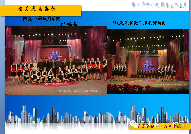 公司以優(yōu)質(zhì)的產(chǎn)品,完善的售后服務(wù)和良好的信譽先后成為航空、銀行、軍工、電力、保險、鐵路、電信、燃?xì)狻撹F、煤礦、商場、學(xué)校、一些大中型上市工礦企業(yè)的服裝供應(yīng)商。